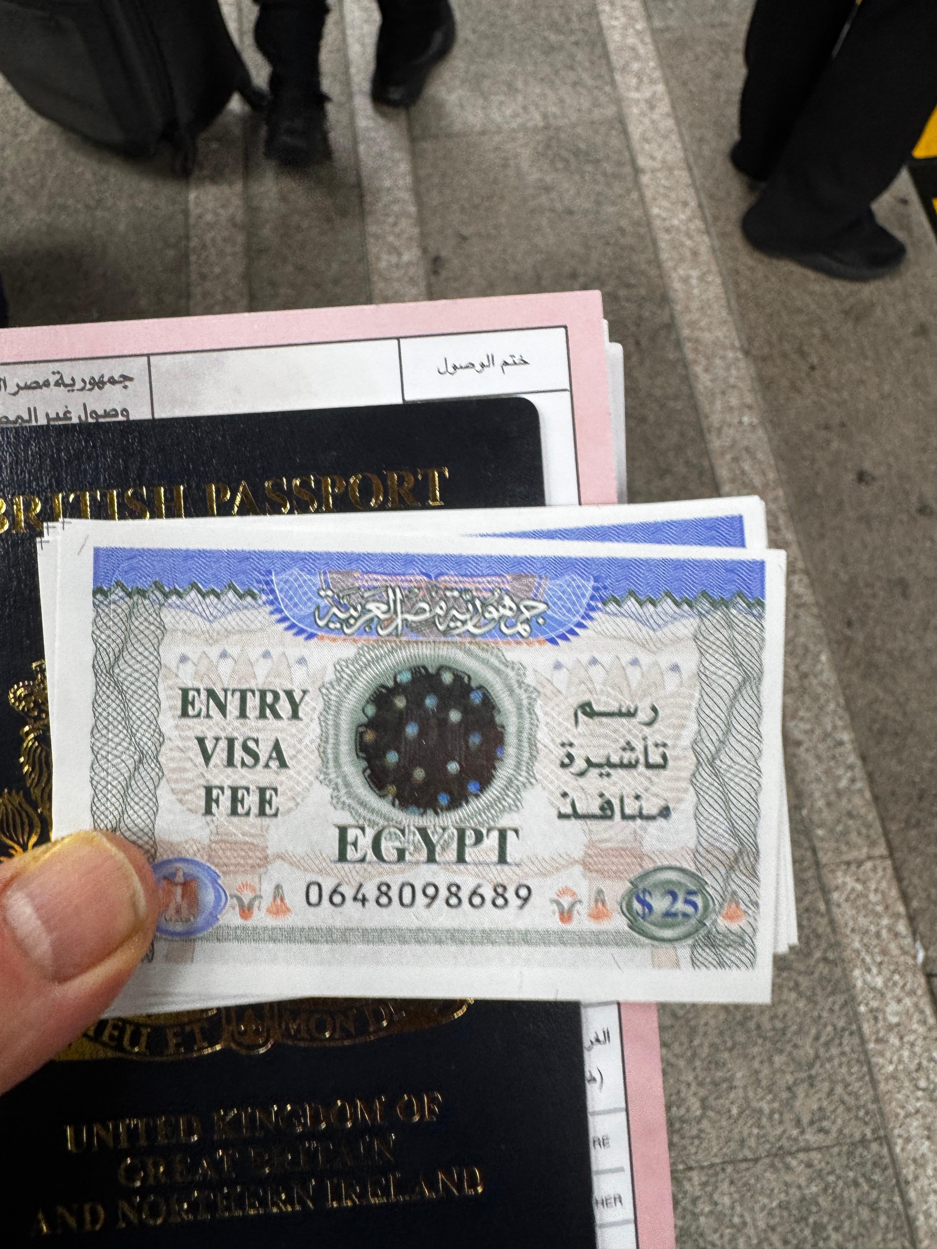 Egyptian immigration is an enigma of procedures. The first hurdle is the Visa on Arrival. Before heading to the passport control, you must buy a visa sticker from one of the bank counters in the hall. It costs $25 per person. Unlike Europe, where cards are king, you MUST have US Dollars in cash. Since getting change in dollars is difficult, bringing crisp, small denominations for the whole family was a stroke of genius.
